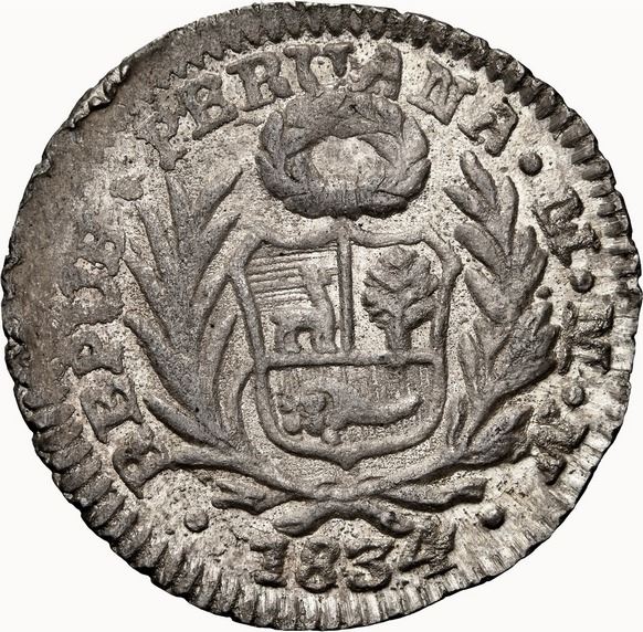 PERU, Lima, ½ real, 1834 MM, NGC MS 64, ex-Hernandez, ex-O'Brien.
