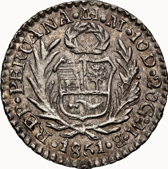 PERU, Lima, ½ real, 1851 MB, NGC MS 62, ex-Carter, ex-O'Brien.