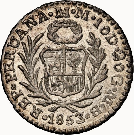PERU, Lima, ½ real, 1853/1 MB, NGC MS 62, finest and only example in NGC census, ex-Flatt, ex-O'Brie