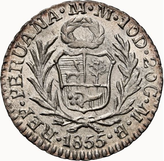 PERU, Lima, ½ real, 1855 MB, NGC MS 63+, ex-O'Brien.