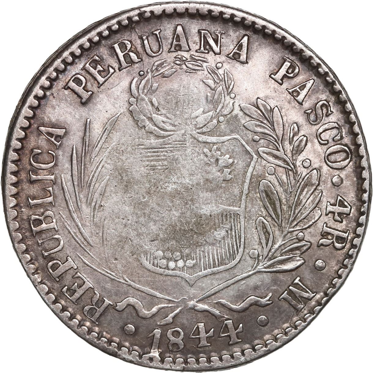 PERU, Pasco, 4 reales, 1844 M, mintmark PASCO, without fineness, full REPUBLICA, NGC VF 30, ex-O'Bri