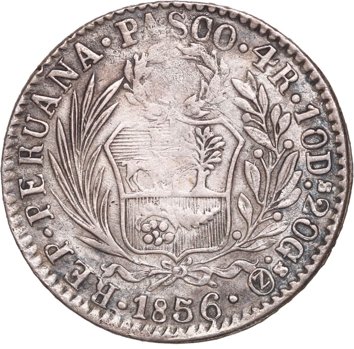 PERU, Pasco, 4 reales, 1856, assayer Z-in-circle, rare, ex-Flatt Plate, ex-Sellschopp, ex-O'Brien.
