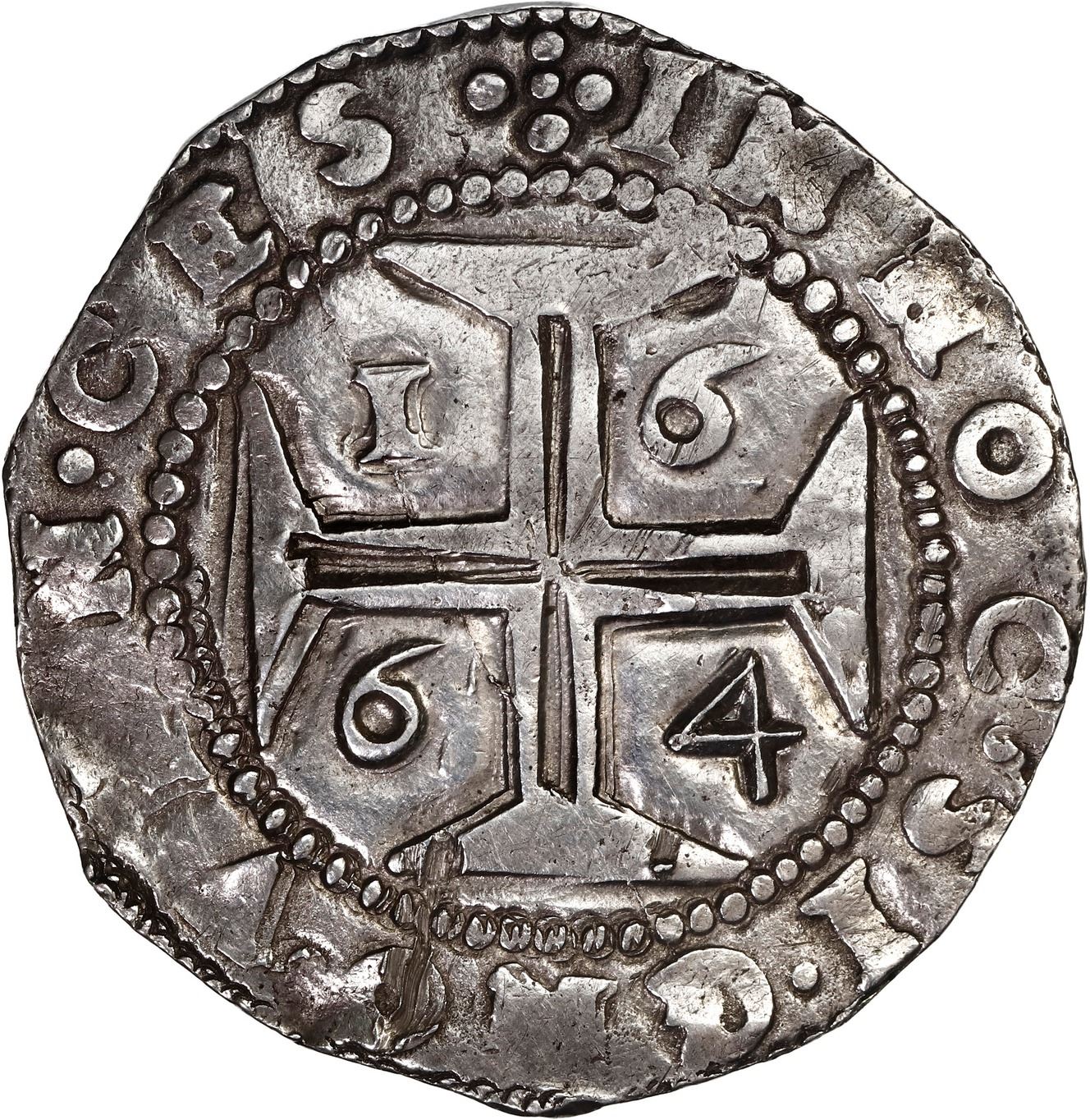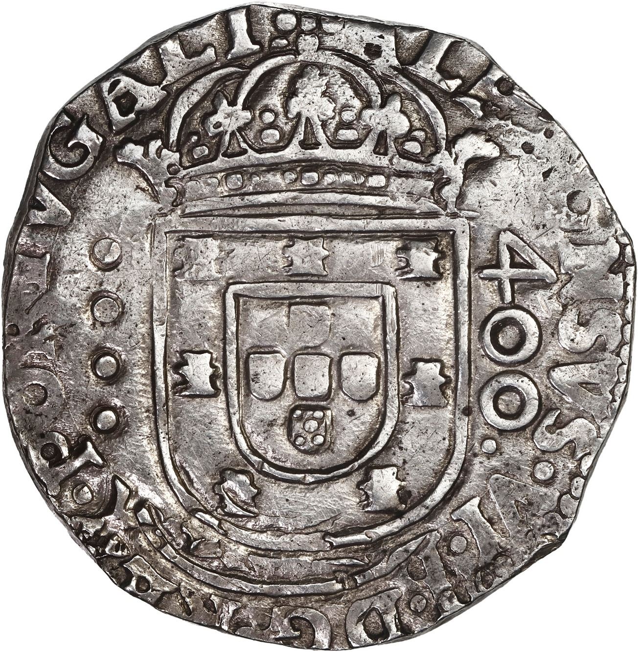 PORTUGAL, Lisbon, cruzado (400 reis), Afonso VI, 1664, legends PORTVGALI / INHOC•SI•GNO•VIN•CES. Gomes-31.10; KM-83. Rare second date of issue, variety with misplaced stops in reverse legend, bold XF+ (cleaned) with choice full inner details and much legend.