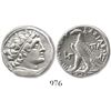 PTOLEMAIC KINGS of EGYPT. Cleopatra VII, Ptolemy XIV, XV and XVI. 51-30 BC. AR tetradrachm. Series A, with the initials of the mint of Paphos. Date LG = year 3 = 49 BC. Svoronos 1849. SNG Copenhagen 378. 13.8 grams. Diademed bust of Ptolemy I right, wearing aegis / Eagle standing left on thunderbolt with wings closed; to left, date LG in left field; PA behind eagle. Lightly toned AVF.