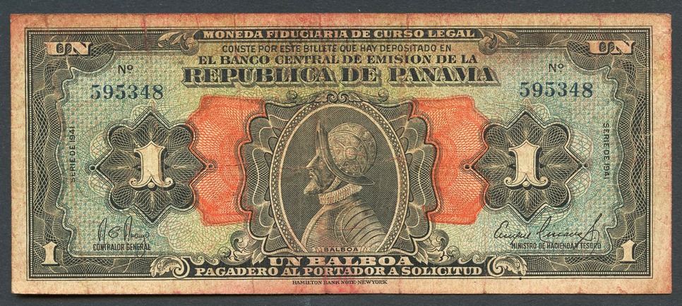 Panama, Banco Central de Emison de la Republica, 1 peso, series 1941, rare  Arias  note.