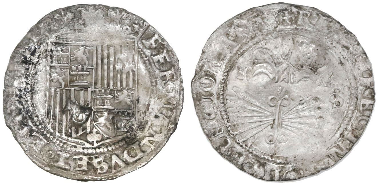 Panama(?), P countermark on a Seville, Spain, 1 real, Ferdinand-Isabel, mintmark S on reverse, rare. CT-unl. (host). 2.93 grams. Very deep and bold P countermark on shield next to another deep but illegible countermark (probably another "P"), the host AXF with full but corroded legends, traces of lacquer and toning, clear mintmark S to left and unreadable letter (not a star) to right on reverse, nothing on either side of shield (unlisted variety in CT).