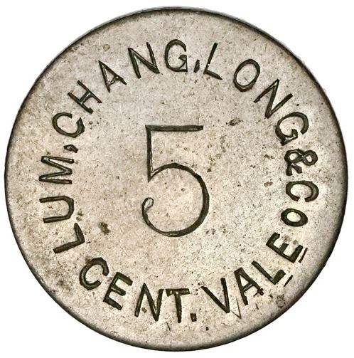 Panama, uniface incuse copper-nickel token, 5 centavos, Lum, Chang, Long & Co., rare.
