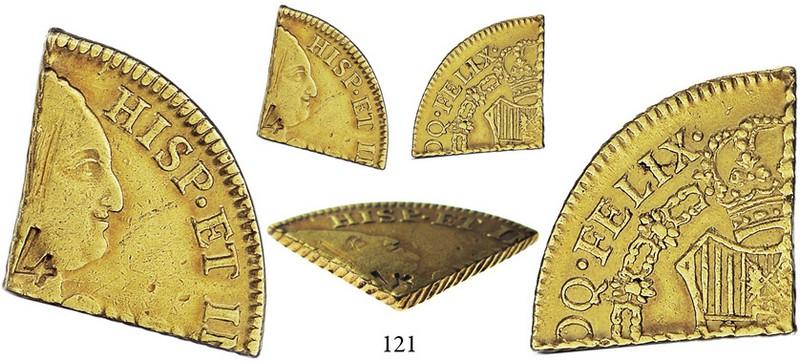 Paraguay (Republic, War of the Triple Alliance), cut 4 pesos fuertes (1866-69), Francisco Solano Lopez, quarter-cut section of a Spanish colonial Charles IV 8 escudos with countermark "4" in corner of the cut and diagonal reeding applied on the cut surfaces, one of 2 known. KM-E2. 6.7 grams. While the quarter-cut silver coins (cut from Bolivian 4 soles) are well known from this period, the cut gold coins are so rare as to be represented by just two known examples, of which this is arguably the finer. The War of the Triple Alliance (1864-70), so-called for the alliance of Brazil, Uruguay and Argentina against Paraguay over economic issues and boundary disputes and the over-ambitious policies of the Paraguayan president/dictator Solano López, is considered one of the bloodiest wars in all of South America and resulted in the loss of about half of the Paraguayan territory and male population. Curiously, in order to make gold coins during the war, Paraguayan women donated their wedding rings to the cause, but also Spanish colonial portrait 8 escudos were cut down and marked. These cut coins, however, were outlawed in 1872 and nearly completely eradicated, with the exception of only the 2 known examples, which are cited in references as far back as 1866 (presumably when they were made) by the collector and owner Manuel José de Guerrico (the other known specimen is in the Museo Nacional de Bellas Artes). The host coin is a nicely toned XF, and the countermark is virtually Uncirculated (as we must assume the coin did not circulate after it was acquired in 1866), with old scratches above the countermark. Plate Coin in KM and pedigreed to the Louis Hudson collection.