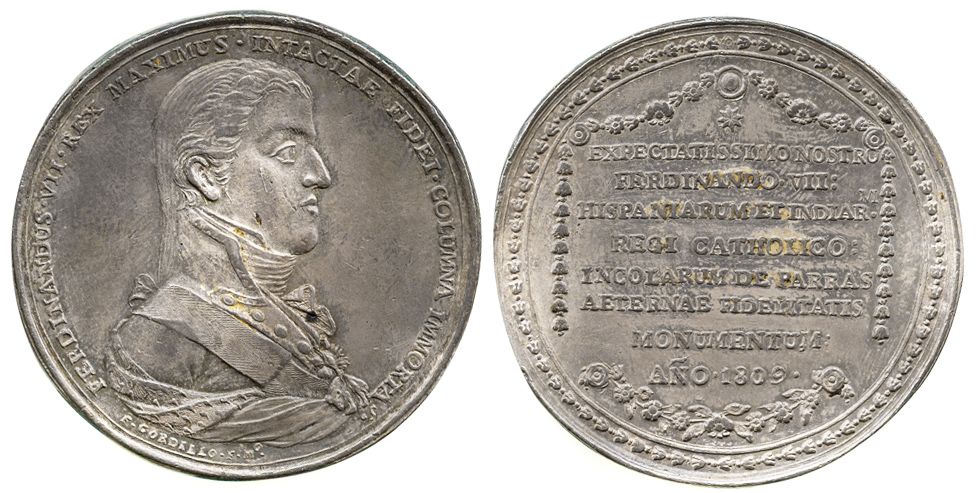 Parras, Mexico, silver proclamation medal, Ferdinand VII, 1809.