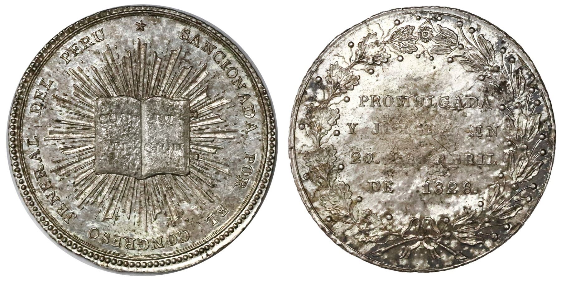Peru, silver medal, 1828, Constitution Approval, NGC MS 63, ex-Cotoca Collection.