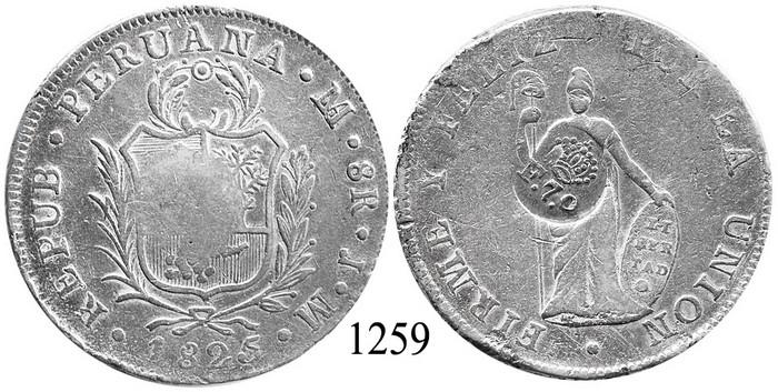 Philippines, 8 reales, "F 7" countermark on Lima, Peru, 8 reales, 1825JM, rare. KM-82. 26.6 grams. Rare combination of host and countermark, the former AVF and the latter XF but unevenly punched.