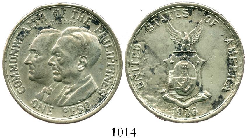 Philippines, peso, 1936, Roosevelt and Quezon.