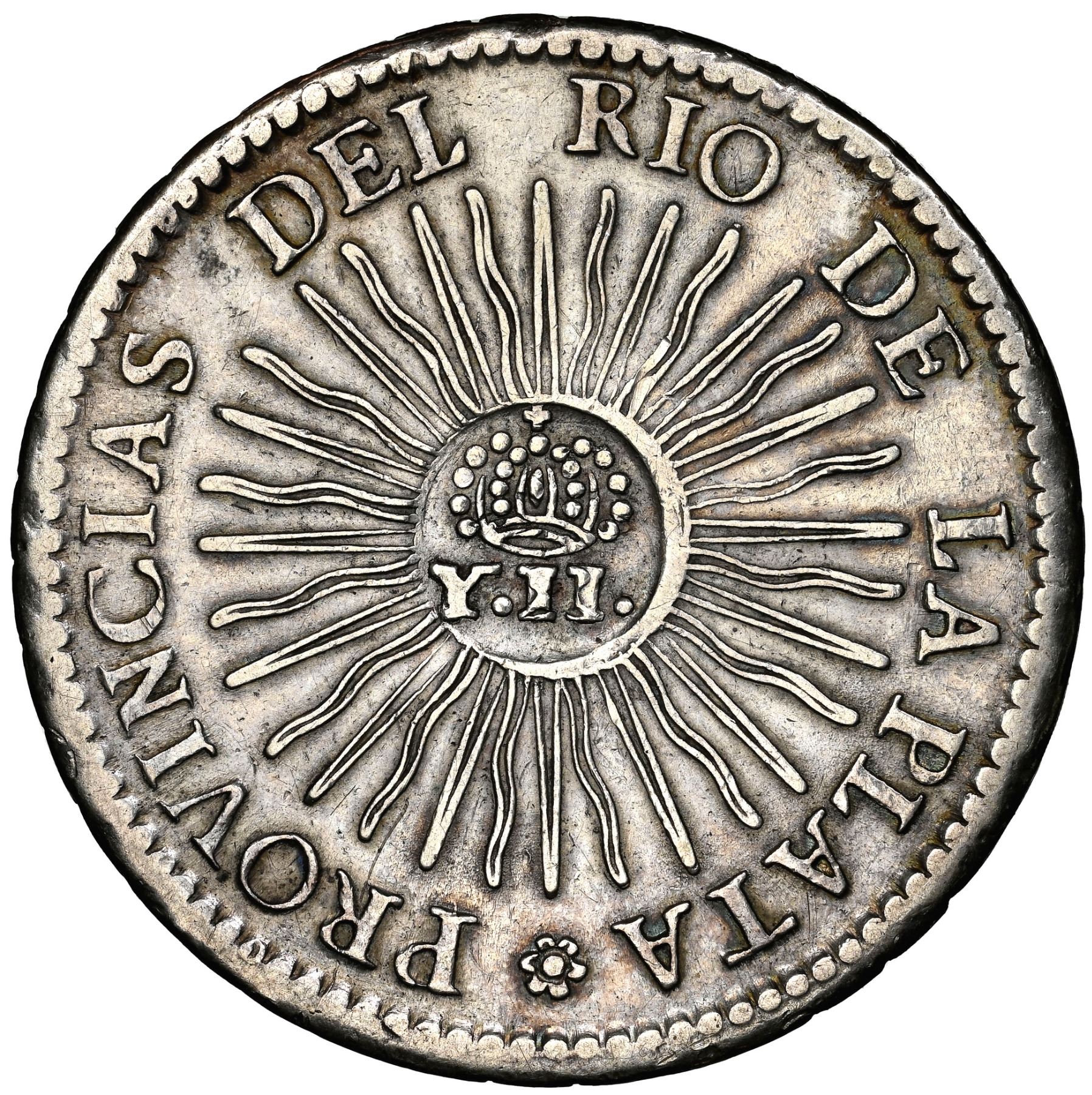 Philippines (under Spain), 8 reales, Isabel II, crowned "Y.II" countermark (Type VI, 1834-7) on an Argentina (River Plate Provinces), 8 soles, 1826 F, La Rioja mint, NGC XF details / cleaned, c/s AU strong, ex-Pomato. KM-95; Cal-668. Very bold countermark and host details, with light contrasting toning and strong strike all over, very attractive for this scarce and desirable host-type, the countermark desirably applied precisely over the sunface (same diameter), as if it were designed specifically for this host! Pedigreed to the Mario Pomato Collection and to the Cayon auction of December 2008 (lot 3046).