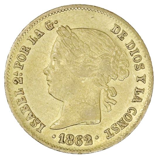 Philippines (under Spain), gold 4 pesos, Isabel II, 1862.