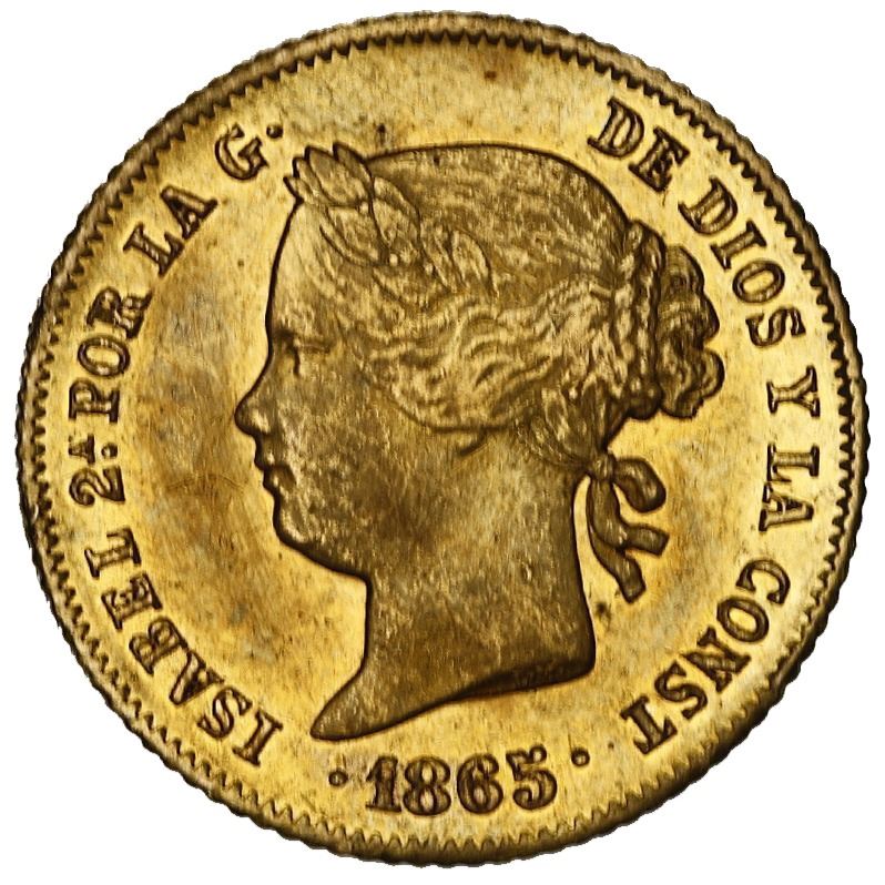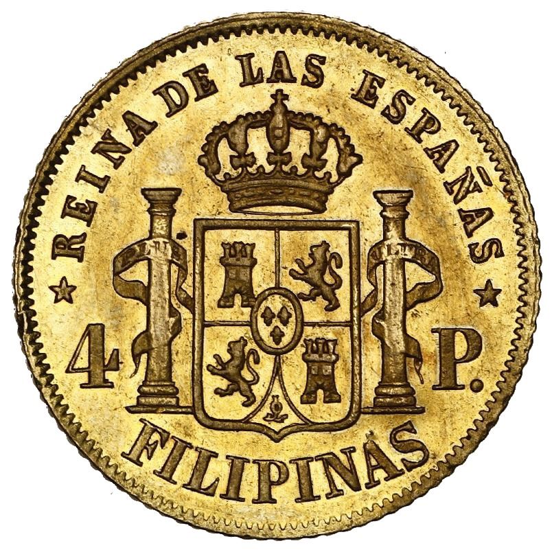Philippines (under Spain), gold 4 pesos, Isabel II, 1865.