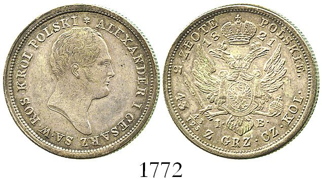 Poland, 2 zlote, Alexander I, 1821-IB. KM-C99b. 9.1 grams. Deeply toned AU-, no problems but lacking in luster.