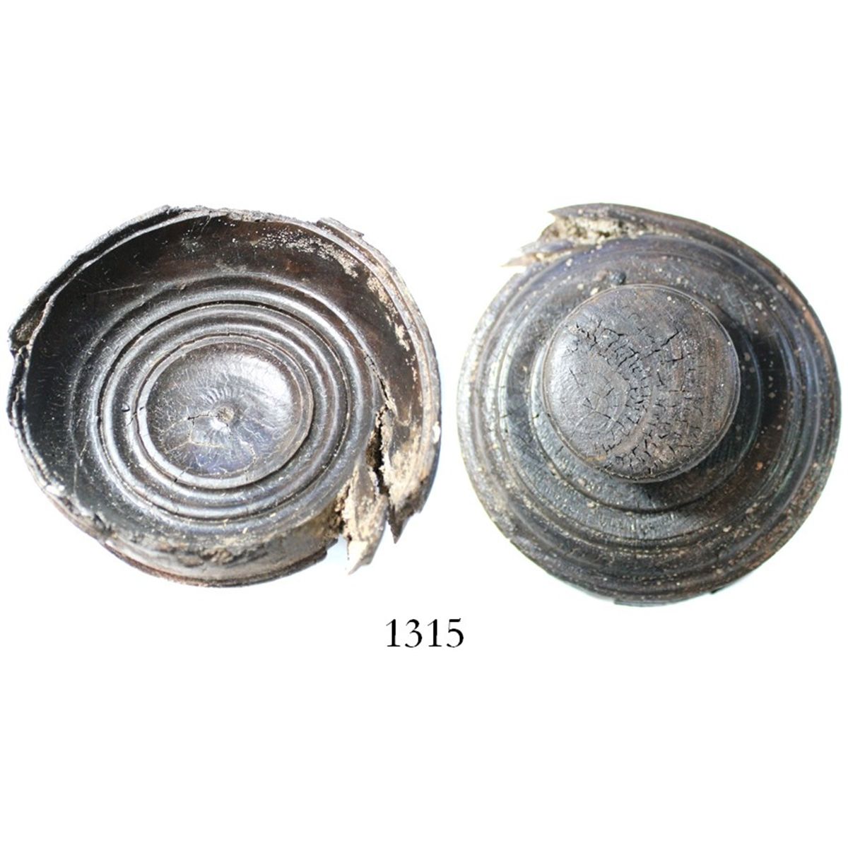 Polished-hardwood pedestal-type bowl, nearly intact. 1252 grams, 6" in diameter and 5" tall. Strange piece with large old cracks in the wood now filled with encrustation, very dark and heavy and somewhat glossy in appearance. Pedigreed to the Marty Meylach collection. Recovered from:Spanish 1733 Fleet, Florida Keys