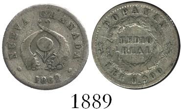 Popayan, Colombia, 1/2 real, 1862/48. R-180.1; KM-133. 1.3 grams. Evenly struck Fine with matte-gray fields, desirable pedigree. Pedigreed to the Norweb and Herman Blanton collections.