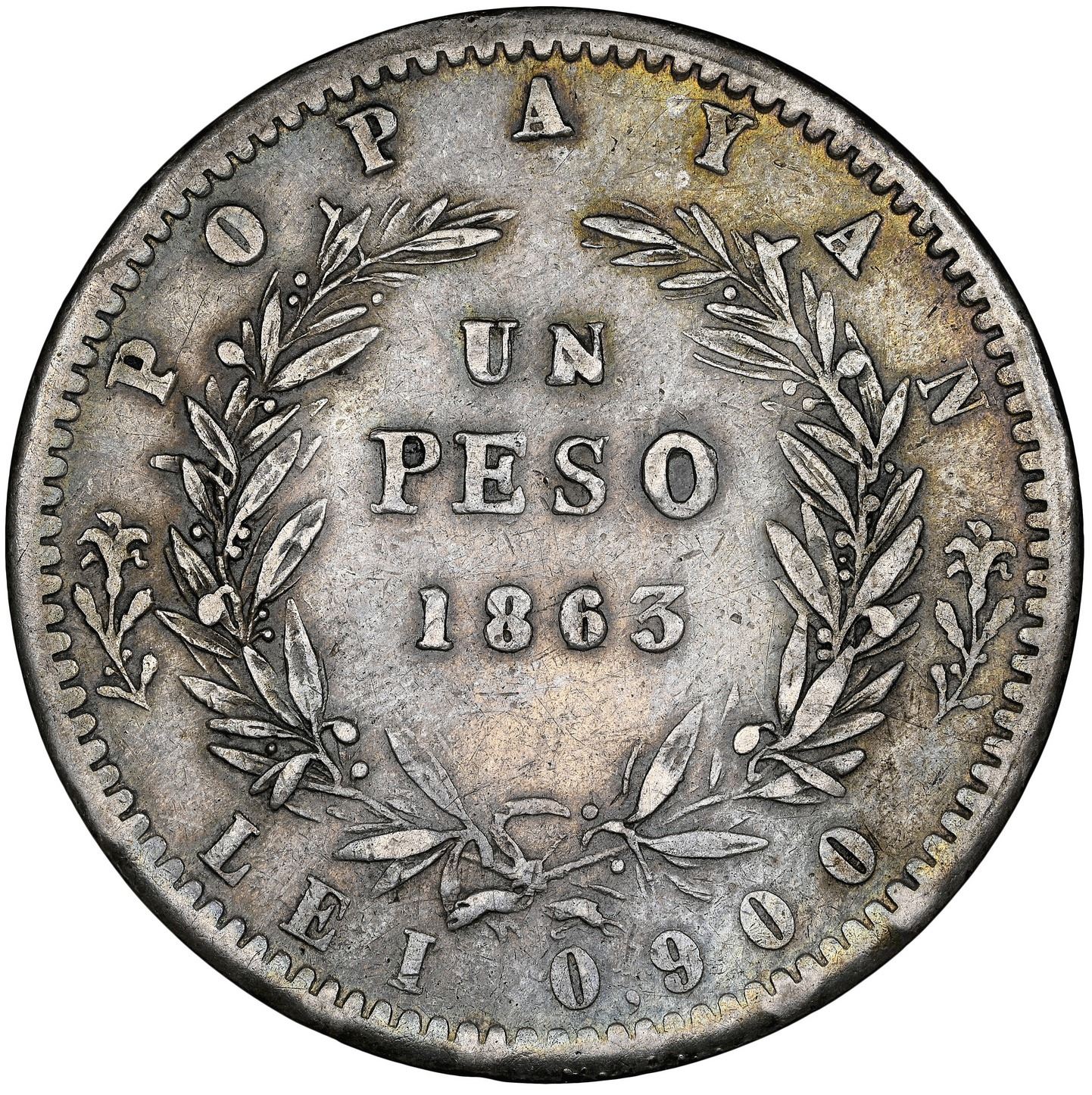 Popayan, Colombia, 1 peso, 1863, very rare, NGC XF details / cleaned.