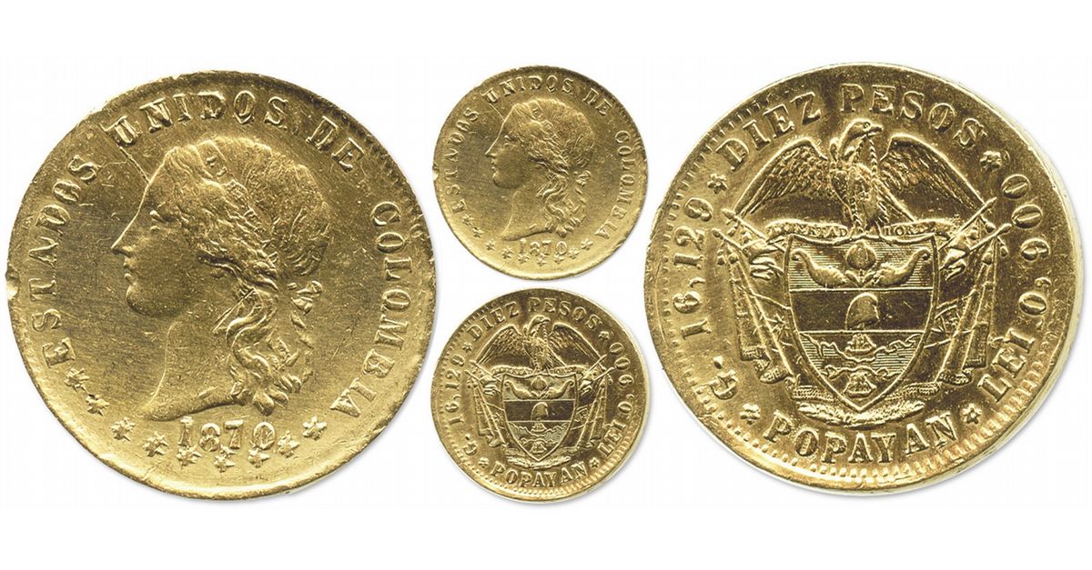 Popayan, Colombia, 10 pesos, 1870, extremely rare.