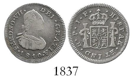 Popayan, Colombia, bust 1/2 real, Ferdinand VII (bust of Charles IV), 1810JF.