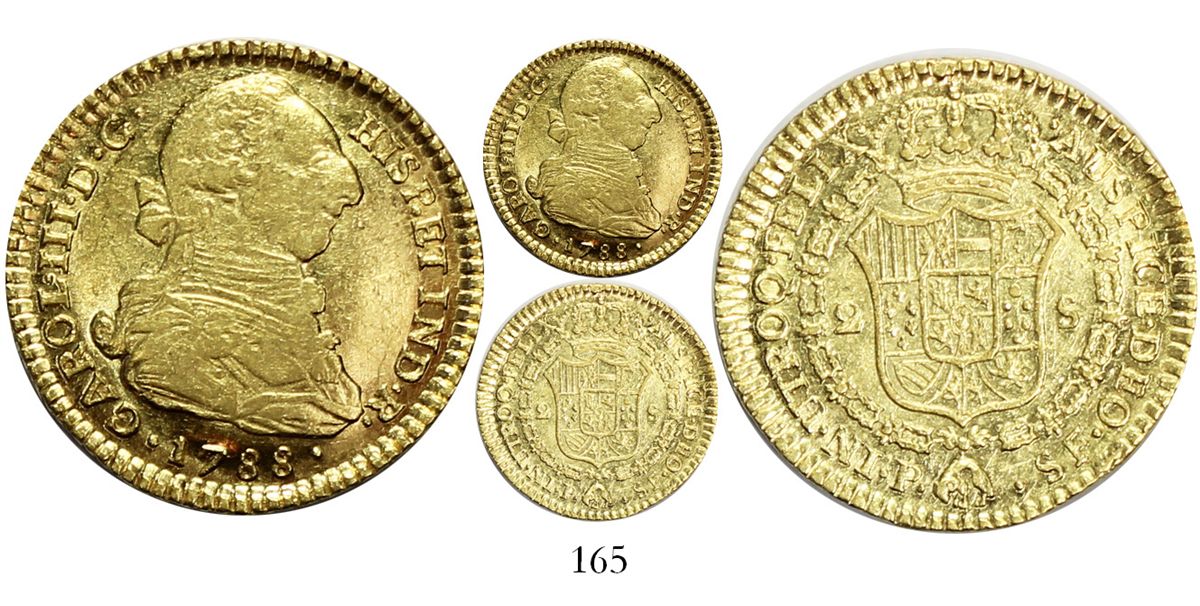 Popayan, Colombia, bust 2 escudos, Charles III, 1788SF. KM-49.2a; CT-518 ;Restrepo-62.34. 6.73 grams. Mint State with flashy luster all over (at least MS 62), the bust not as bold as it could be but with full details, minor flaw in reverse rim.
