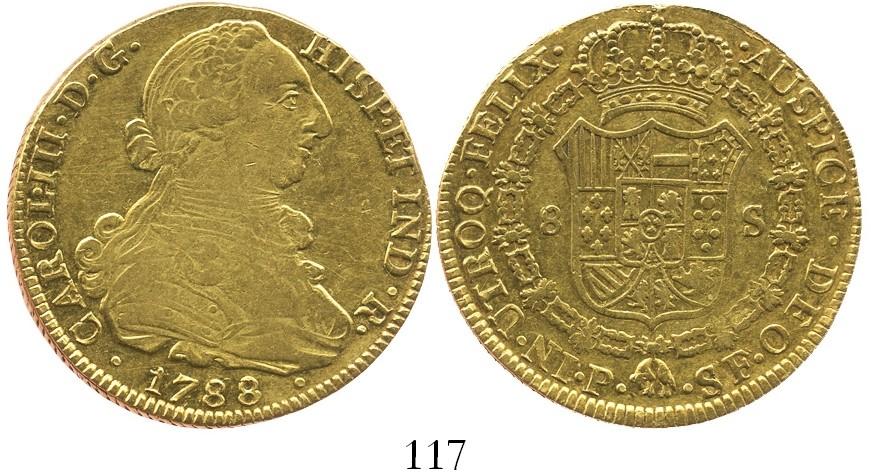 Popayan, Colombia, bust 8 escudos, Charles III, 1788SF. KM-50.2a; CT-141. 26.9 grams. Lustrous AXF, lightly cleaned, slightly crude edge (as made).