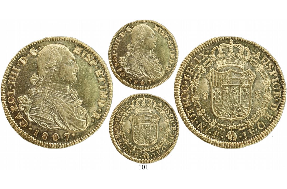 Popayan, Colombia, bust 8 escudos, Charles IV, 1807JF.