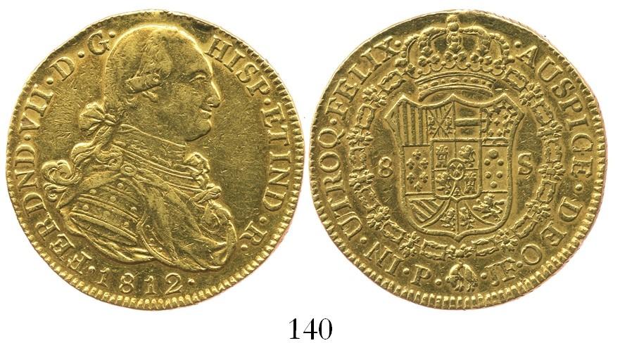 Popayan, Colombia, bust 8 escudos, Ferdinand VII (bust of Charles IV), 1812JF.