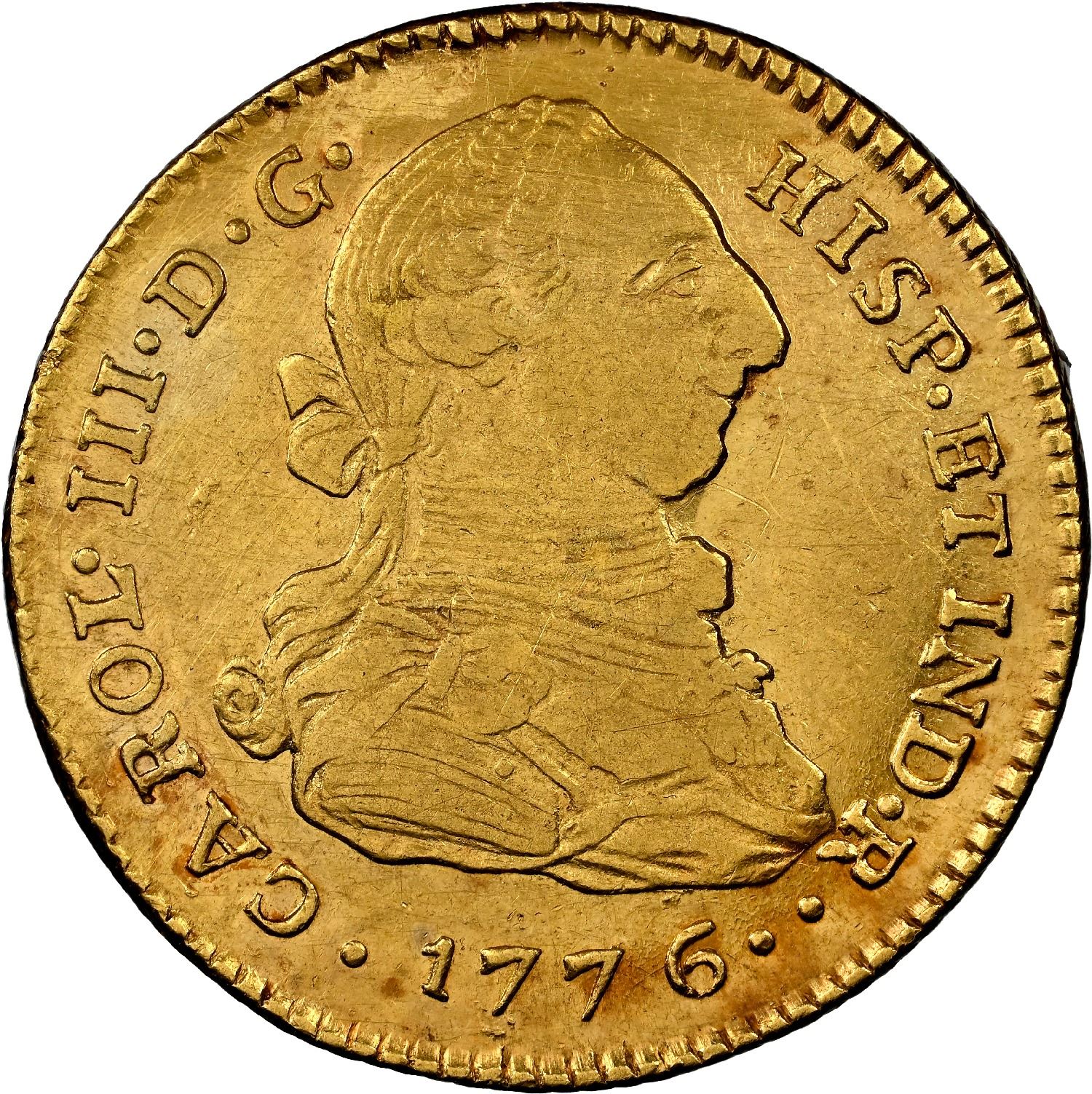 Popayan, Colombia, gold bust 2 escudos, Charles III, 1776 SF, NGC AU details / obv cleaned. Restrepo-62.10; Cal-1634; KM-49.2; Fr-40. Lustrous piece with well-struck details, hairlines across the bust, popular date with US collectors.