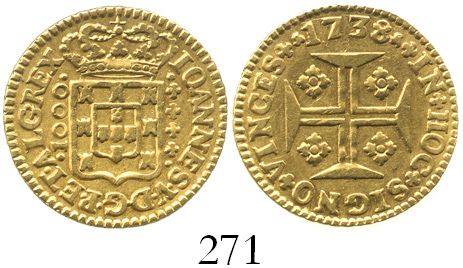 Portugal (Lisbon), 1000 reis, 1738. KM-182. 2.6 grams. AU- with muted luster, light adjustment mark on cross.