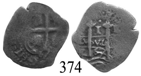 Potosí, Bolivia, cob 1 real, 1667E. S-P37b. 1.8 grams. Good full pillars with bold date, decent cross, thin from corrosion. Recovered from: Consolación, sunk in 1681 off Santa Clara Island, Ecuador. With ROBCAR photo-certificate.