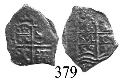 Potosí, Bolivia, cob 1 real, 1669E. S-P37b. 1.2 grams. Good full pillars and cross but very thin from corrosion. Recovered from: Consolación, sunk in 1681 off Santa Clara Island, Ecuador. With baseball card-type ROBCAR certificate.