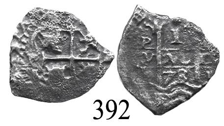Potosí, Bolivia, cob 1 real, 1678E. S-P37b. 1.8 grams. Nice shape, one bold pillar, full cross, bold date, some corrosion. Recovered from: Consolación, sunk in 1681 off Santa Clara Island, Ecuador. With baseball card-type ROBCAR certificate.