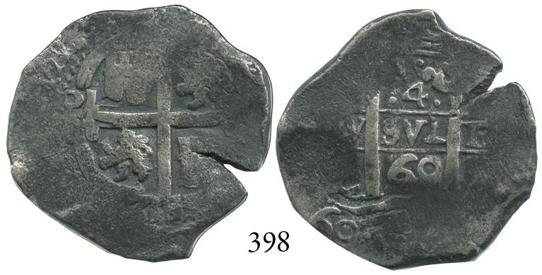 Potosí, Bolivia, cob 4 reales, 1669E.