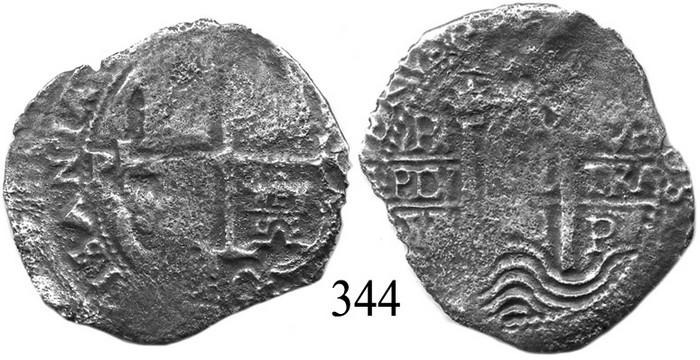 Potosí, Bolivia, cob 4 reales, 1680V. S-P39. 8.7 grams. Corroded but with full pillars with crisp full waves, 3 mintmarks, nearly full cross with bold (H)ISANIARV(M) in legend (lacking the P), a unique error, scarce final year from this wreck. Recovered from: Consolación, sunk in 1681 off Santa Clara Island, Ecuador. With photo-certificate.