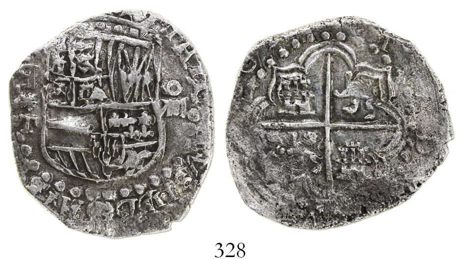 Potosí, Bolivia, cob 8 reales, (16)2(?)T, backwards mintmark, Grade 1. S-P21; KM-10. 26.03 grams. Exceptionally bold detail on both sides, even with luster on fields, with full "q*T" for mintmark-assayer, king's ordinal III in legend, nicely toned and virtually corrosion-free except for one small spot on reverse surface. With Fisher photo-certificate #164039. Recovered from: Atocha, sunk in 1622 west of Key West, Florida
