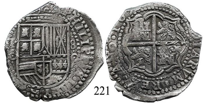 Potosí, Bolivia, cob 8 reales, 165(1)O, with crowned-O countermark (scarce) on cross. S-P35. 27.0 grams. Very choice, uncorroded details all over (looks like a presentation piece of some sort) enhanced by beautiful brown toning, the countermark not bold but all there, also the tops of the digits of the date off the edge, overall one of the most beautiful specimens we have ever seen. Recovered from: Capitana, sunk in 1654 off Chanduy, Ecuador.