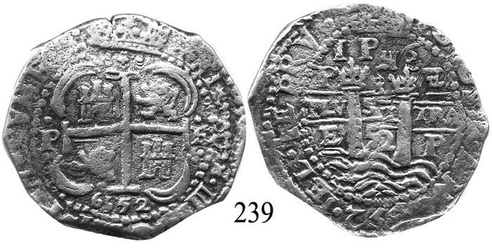 Potosí, Bolivia, cob 8 reales, 1652E (post-transitional).