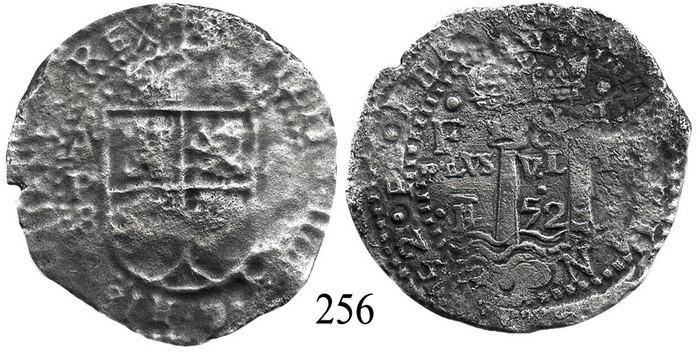 Potosí, Bolivia, cob 8 reales, 1652E transitional Type V/A, extremely rare variant with motto as PLVS-VL-TRA. S-P37. 18.8 grams. A corroded coin, to be sure, yet with clear pillars side that shows the unusually-split motto, the only other known specimens of which are Lázaro #127 and the cover coin of the 1995 Menzel booklet The Potosí Mint Scandal and Great Transition of 1652, both of which are considered Royals, which this present coin might be too, just with too much corrosion to know for sure. Also note the 2 bold dates and full shield, some good toning. Recovered from: Maravillas, sunk in 1656 off Grand Bahama Island. With Marex certificate #0018.
