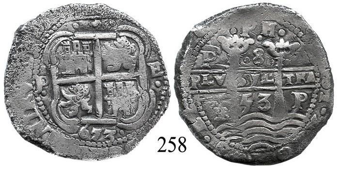 Potosí, Bolivia, cob 8 reales, 1653E.