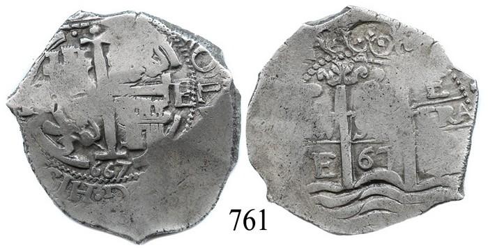 Potosí, Bolivia, cob 8 reales, 1667E, Charles II.