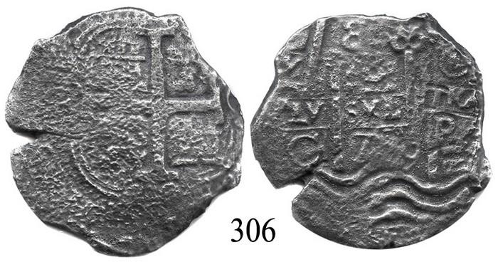 Potosí, Bolivia, cob 8 reales, 1679C. S-P38. 21.0 grams. Bold but doubled pillars-and-waves with 2 clear C's, full but slightly off-center cross, some corrosion. Recovered from: Consolación, sunk in 1681 off Santa Clara Island, Ecuador. With photo-certificate.