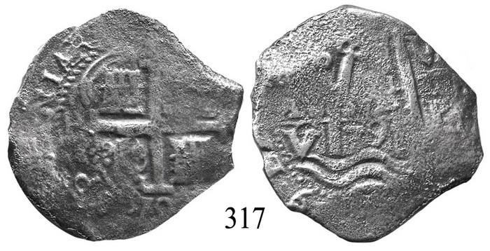 Potosí, Bolivia, cob 8 reales, 1679V/C, scarce. S-P39. 18.7 grams. Three dates, 2 bold V/C's, full cross despite moderate corrosion all over. Recovered from: Consolación, sunk in 1681 off Santa Clara Island, Ecuador. With ROBCAR photo-certificate.