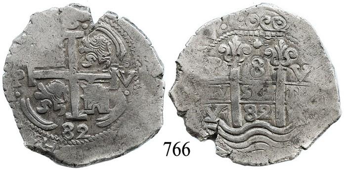 Potosí, Bolivia, cob 8 reales, 1682V.