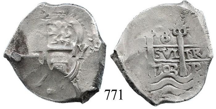 Potosí, Bolivia, cob 8 reales, 1703Y.