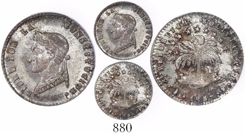 Potosi, Bolivia, 1/2 sol, 1857FJ, encapsulated PCGS MS64, rare grade. KM-118.2. Nice strike, light toning over luster, top grade, exceptional quality all around.
