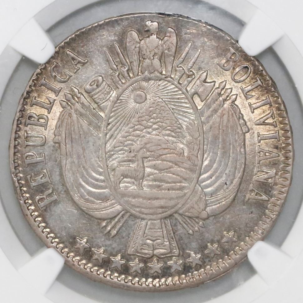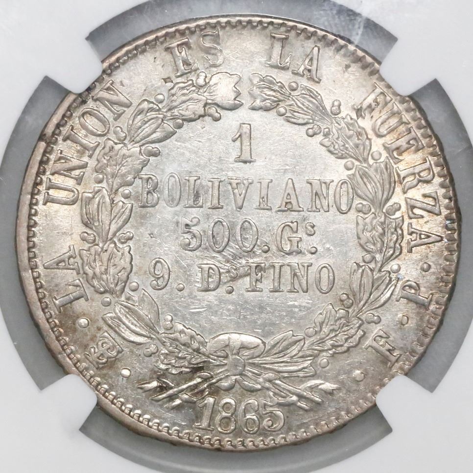 Potosi, Bolivia, 1 boliviano, 1865FP, NGC AU 58.