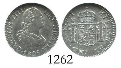 Potosi, Bolivia, bust 1/2 real, Charles IV, 1808PJ, ex-Whittier collection, encapsulated NGC MS-63. KM-69; CT-1325. Choice grade, lustrous but no toning, desirable pedigree. Pedigreed to the Whittier collection, as stated in the slab.