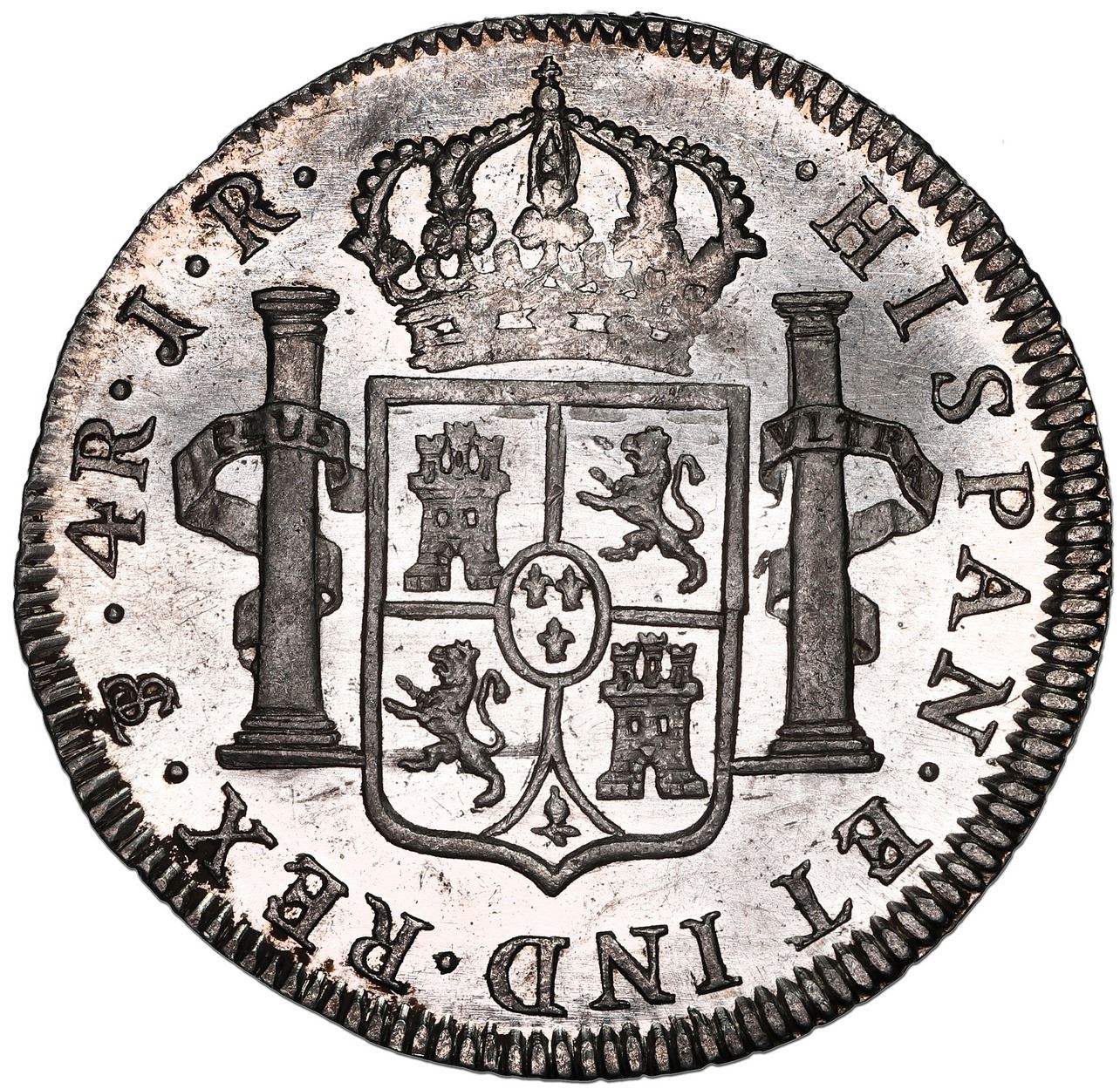 Potosi, Bolivia, bust 4 reales, Charles III, 1773 JR, with dot above mintmark, NGC MS 62, finest kno